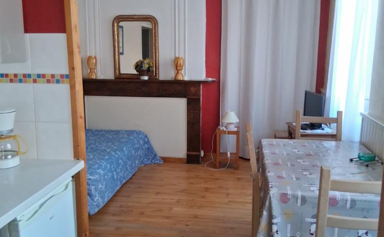 Studio avec cuisine équipée, salon avec couchage.